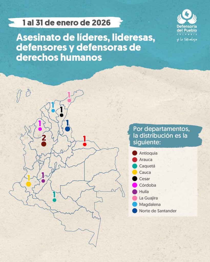 Alarma por violencia en Colombia: Enero cierra con 11 líderes asesinados y 12 masacres.